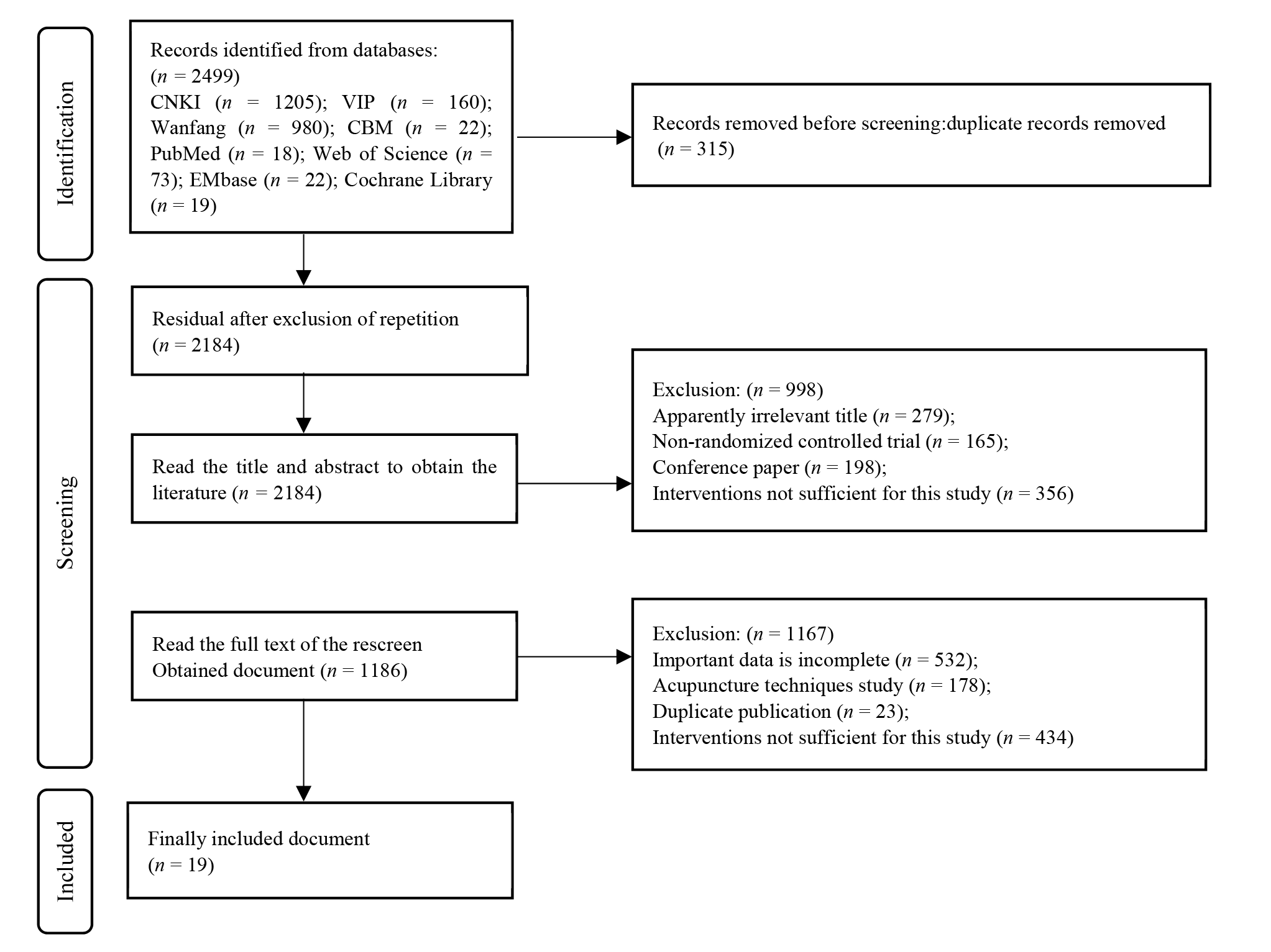 Figure 1 Flow chart of the literature screening process CNKI: China National Knowledge Infrastructure Database; VIP: China Science and Technology Journal Database; CBM: Chinese Biomedical Literature Database.
