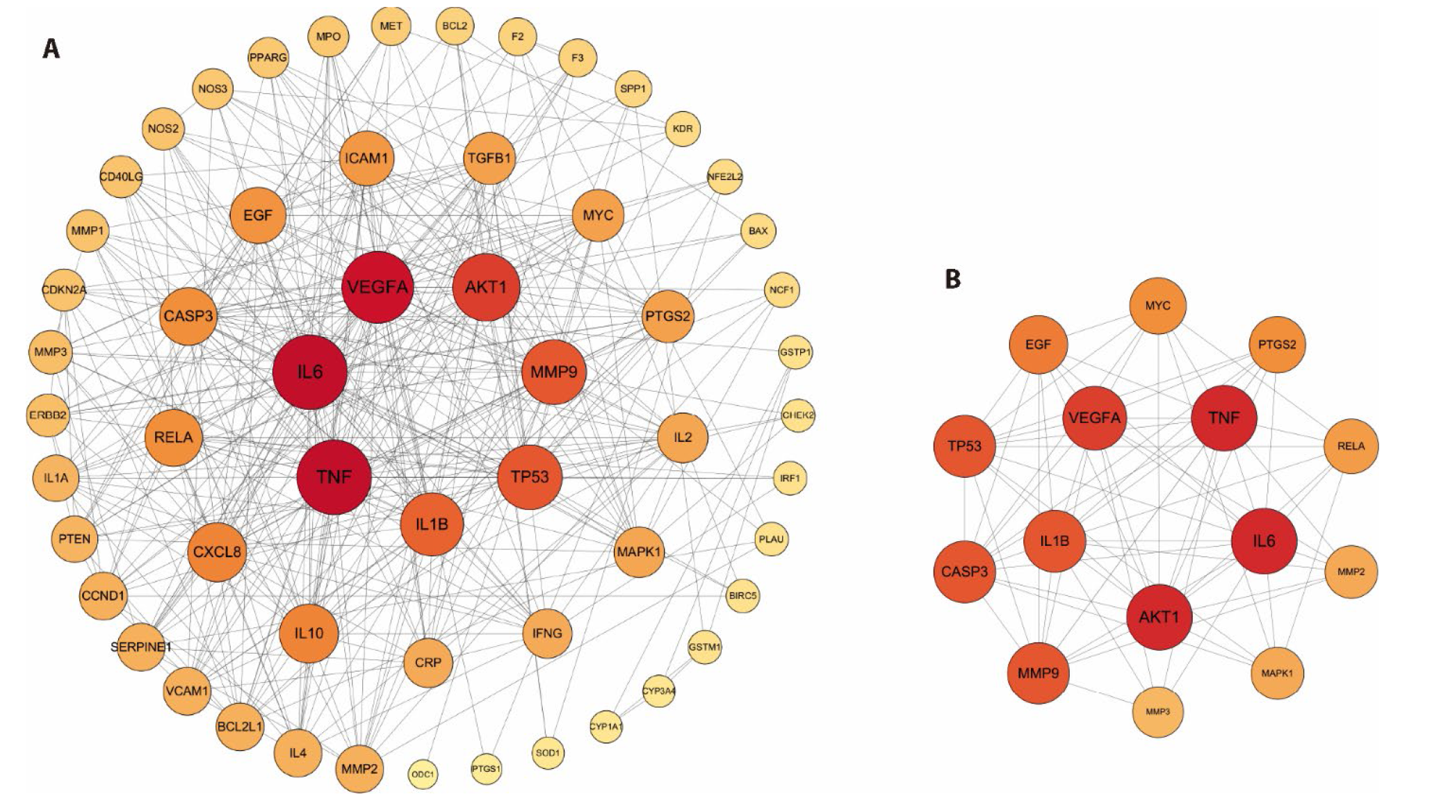 RESULTS: A total of 22 active components and 220 target genes were found to be associated with DBD. In addition, 343 GU-related target genes and 57 target genes specific to DBD treatment of GU were identified. The Gene Ontology functional enrichment analysis revealed 510 entries for biological processes, 36 entries for cell composition, and 69 entries for molecular functions. In the pathway enrichment analysis, 143 signaling pathways were identified. Additionally, the molecular docking results revealed that the main active components of DBD exhibited a strong binding capacity with key proteins, including tumor necrosis factor, AKT serine/threonine kinase 1, interleukin-6, vascular endothelial growth factor, and interleukin-1 Beta. Among these, quercetin, kaempferol, formononetin, isorhamnetin, and beta-sitosterol displayed the strongest binding affinities for these key proteins. in vivo experiments showed that DBD pretreatment effectively protected gastric mucosa, and the benefits might be attributed to the downregulation of above key proteins.