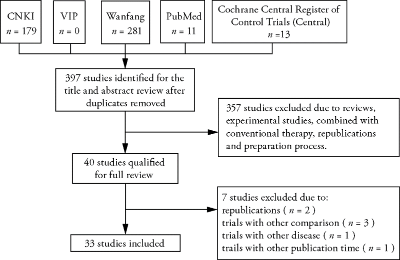 Figure 1 Flowchart of study searches and screening CNKI: China National Knowledge Infrastructure Database; VIP: China Science and Technology Journal Database.